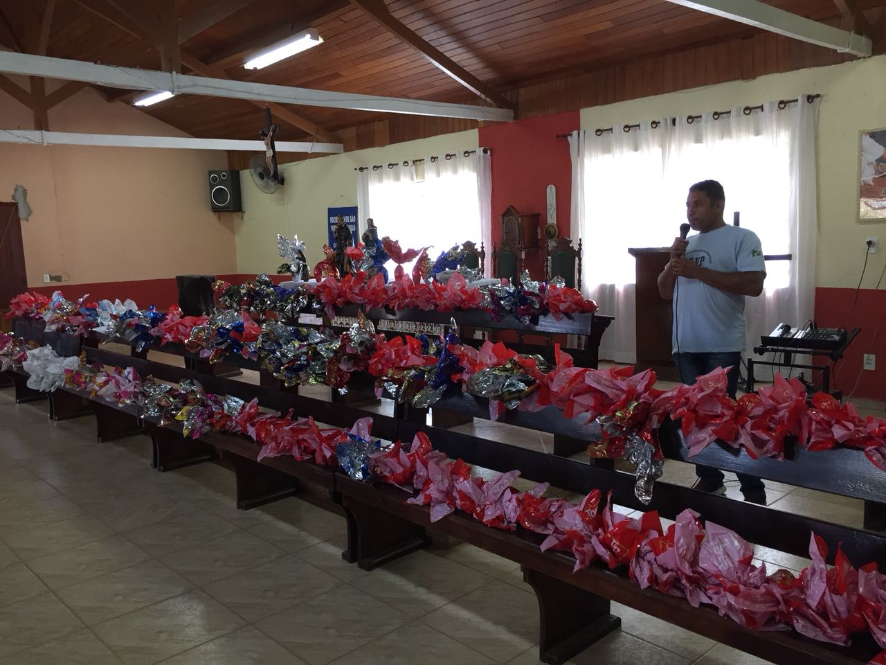 Este sábado, véspera de Páscoa, foi de alegria para cerca de 300 crianças do bairro São Geraldo, em Pouso Alegre, Sul de Minas. Elas foram até a capela do Mosteiro Popular Nossa Senhora de Guadalupe, no mesmo bairro, para receberem ovos de chocolate. A ação é coordenada pelo padre Mário Borghi, fundador do mosteiro, e conta com a participação dos Vicentinos e este ano teve o apoio da Polícia Civil.