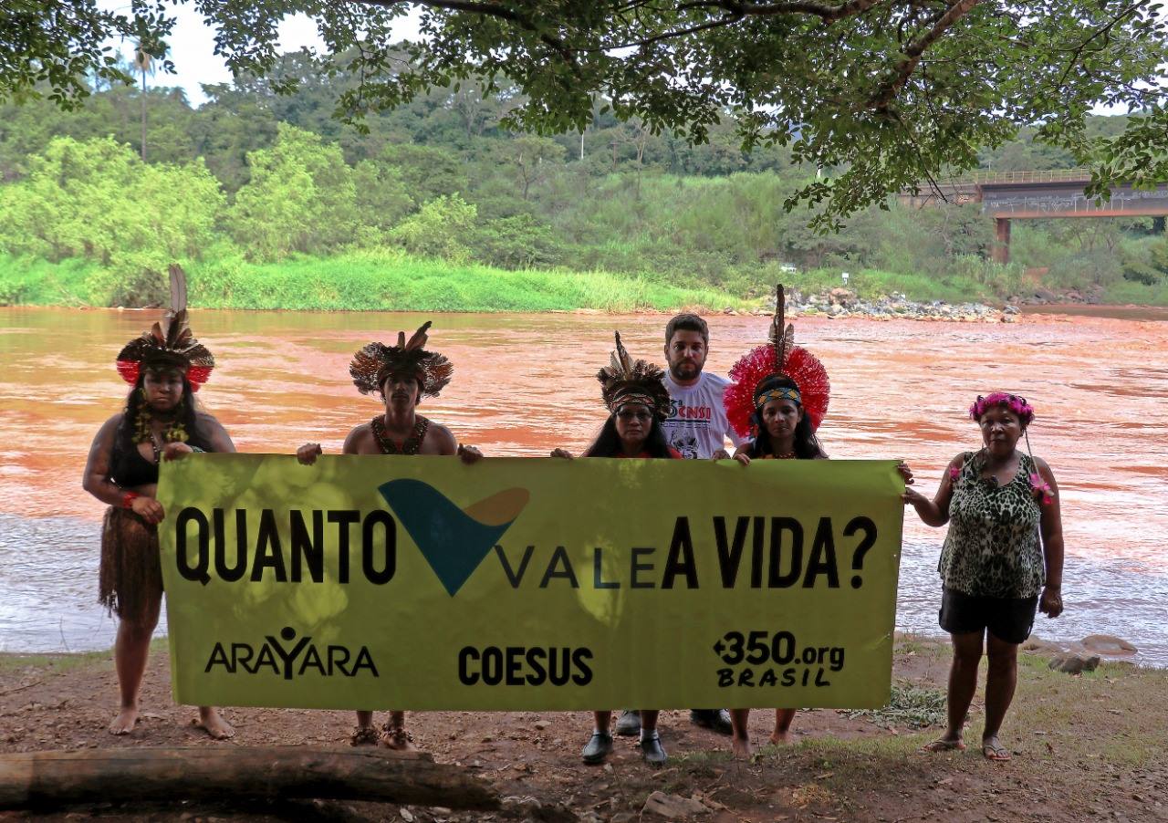 Renan entre índios Pataxós, às margens do rio Paraopeba ‘lameado’ (Foto: Paulinne Rhinow Giffhorn – 350.org Brasil)