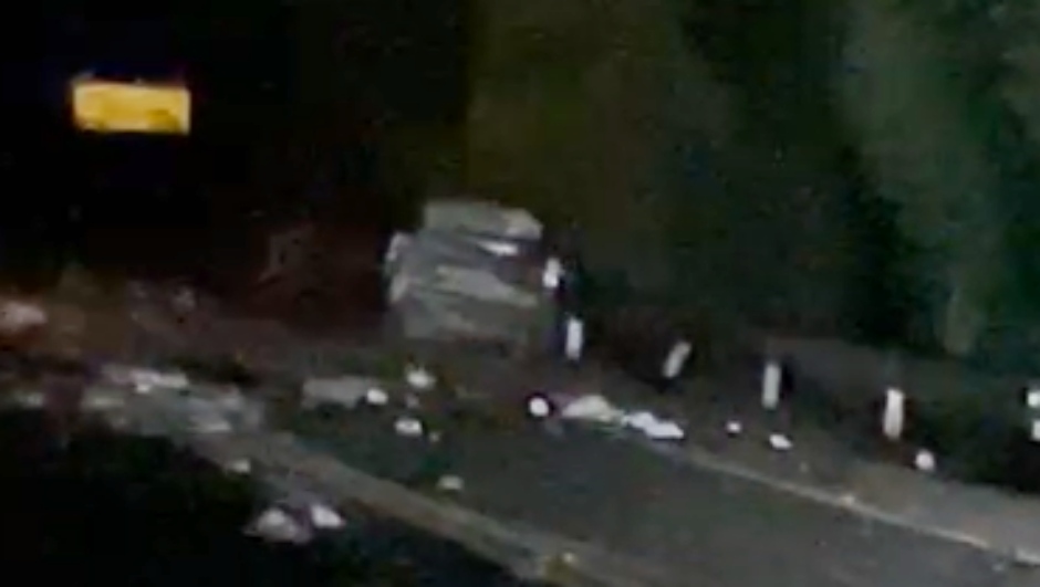 A picape parou após bater no guardrail e ficou destruída. A carreta tombou atravessada entre os dois sentidos da pista e bloqueia toda a rodovia. Ela transportava gás natural de Poços de Caldas para Extrema.