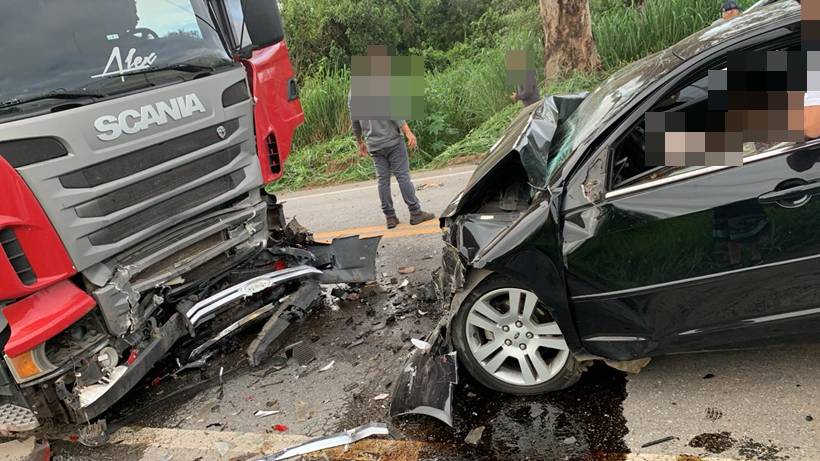 O acidente aconteceu por volta de 7h desta sexta-feira (27/2), no KM 83 da rodovia, e envolveu um Ford/Fusion e uma CVC (Combinação de Veículos de Carga) composto por um cavalo mecânico Scania e um semirreboque.