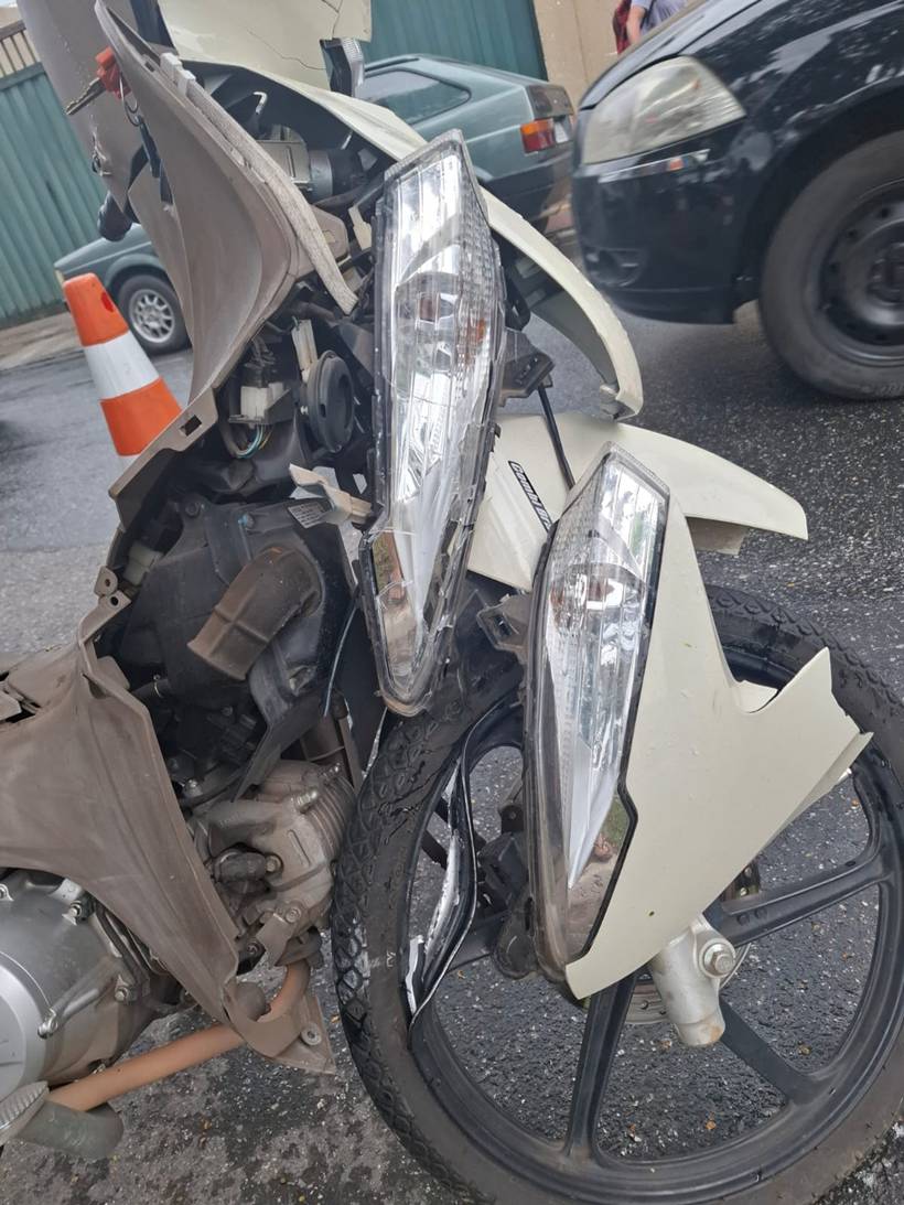 Nayara Andery / 31 março 2026Vítima relata que foi atingida por carro antes de bater em árvore. Mulher está cheia de hematomas e escoriações. Moto ficou destruída.