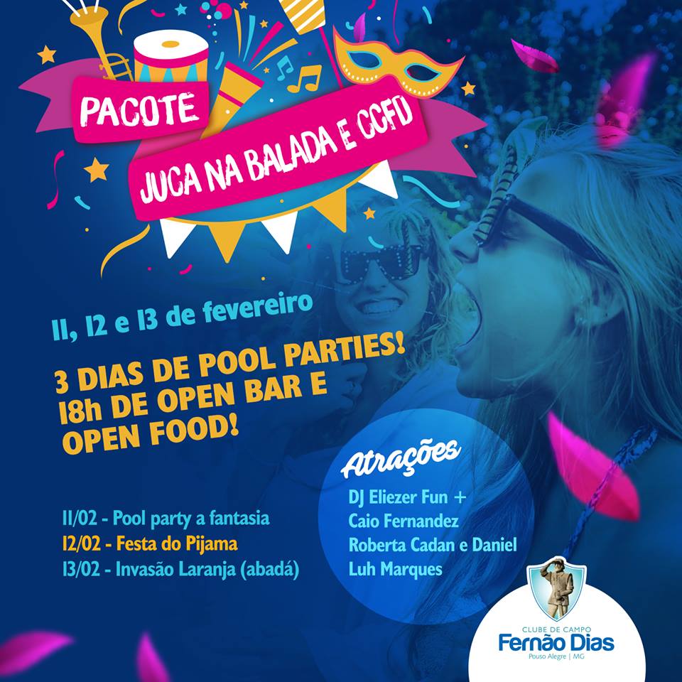No Clube de Campo Fernão Dias terão animadas festas na piscina. É o Bloco Juca na Balada.