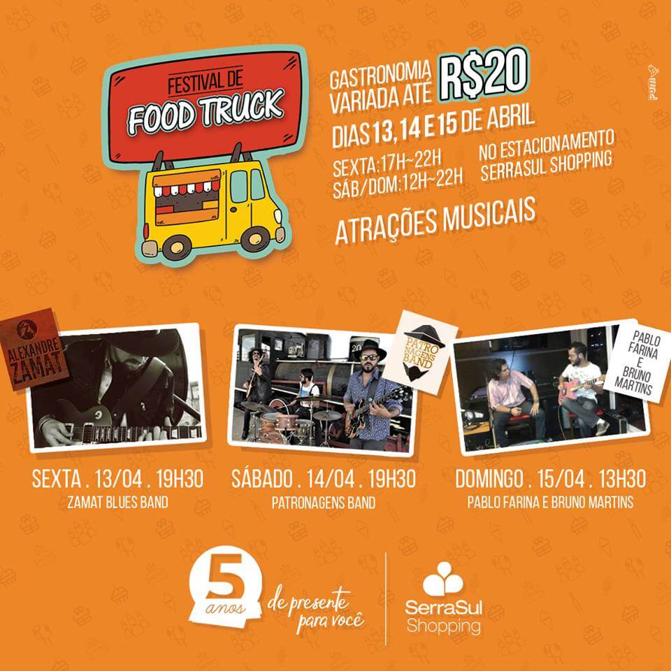 A promoção de comida a R$ 20 rompe as fronteiras do festival e chega à Praça de Alimentação do SerraSul Shopping. Operações do mall como a Sabor Brasil, Los Tacos, Ravena Gourmet, Chicken in House, Empório São Paulo e Montana Griil desenvolveram um cardápio especial para o fim de semana.