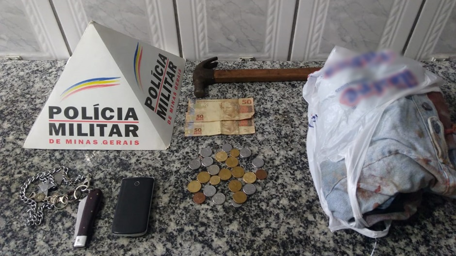 Mesmo ferido, o aposentado conseguiu sair na rua e pedir ajuda. A PM foi ao local e, na vizinhança, encontrou o suspeito, um servente de pedreiro, de 52 anos, escondido na casa de uma aposentada, de 53 anos. Com o homem, foram encontrados R$ 100 e o quintal da casa estavam o martelo, o cordão, um canivete e a blusa suja de sangue que era usada pelo suspeito no momento do crime.