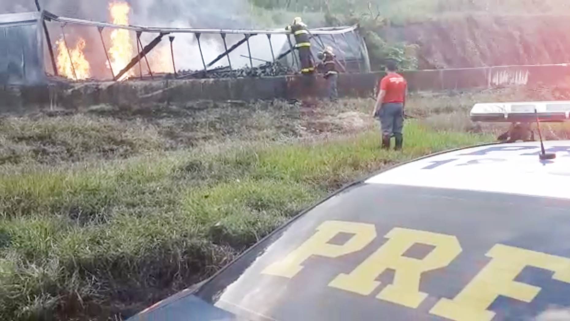 De acordo com a Polícia Rodoviária Federal, o motorista da carrega teve apenas ferimentos leves, conseguindo escapar da cabine antes que o fogo se alastrasse.