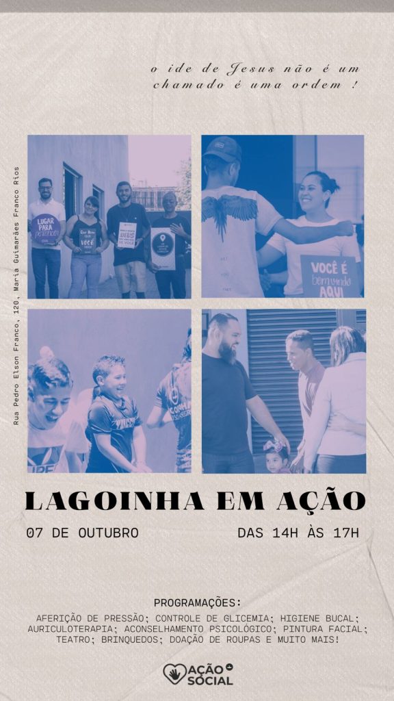 Iago Almeida / 06 outubro 2023A Igreja Batista da Lagoinha vai promover uma ação social em Pouso Alegre, neste sábado (07/10). O evento acontece na sede da igreja no bairro Costa Rios, das 14h às 17h.