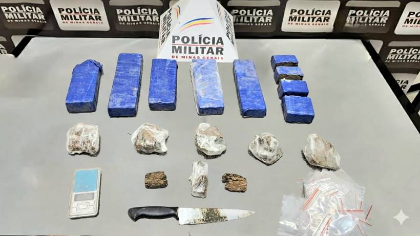 Ele foi abordado e na mochila dele a polícia encontrou bastante droga, além de R$ 105,00 em notas diversas. Foram apreendidos um papelote de cocaína, 3 pedras de crack, 7 porções e 6 tabletes de maconha, uma balança de precisão e uma faca, usada para fracionar as drogas.