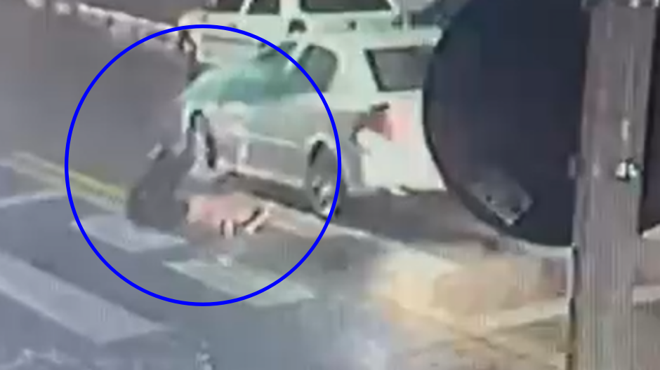 Quando Cristina continua na faixa de pedestre na pista onde está o carro, o motorista avança. Assustada, ela dá um passo para trás e é derruba pelo carro, que passa sobre o pé dela.