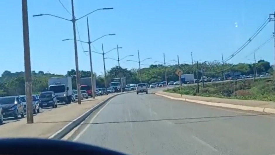A Av. Dique 1 está com filas em períodos específicos do dia. O motivo é a obra de recapeamento da Av. Dique 2, que começou nesta segunda-feira e deve durar até quatro semanas.