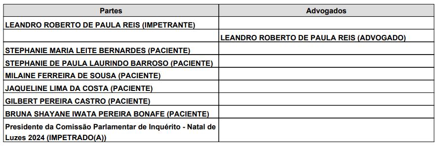 Além disso, o Habeas Corpus também impede que o grupo seja conduzido coercitivamente, por uma solicitação que havia sido feita à Justiça, na última semana, pelos vereadores que compõem a CPI do Natal. A solicitação foi feita após o grupo não comparecer a oitivas agendadas anteriormente.