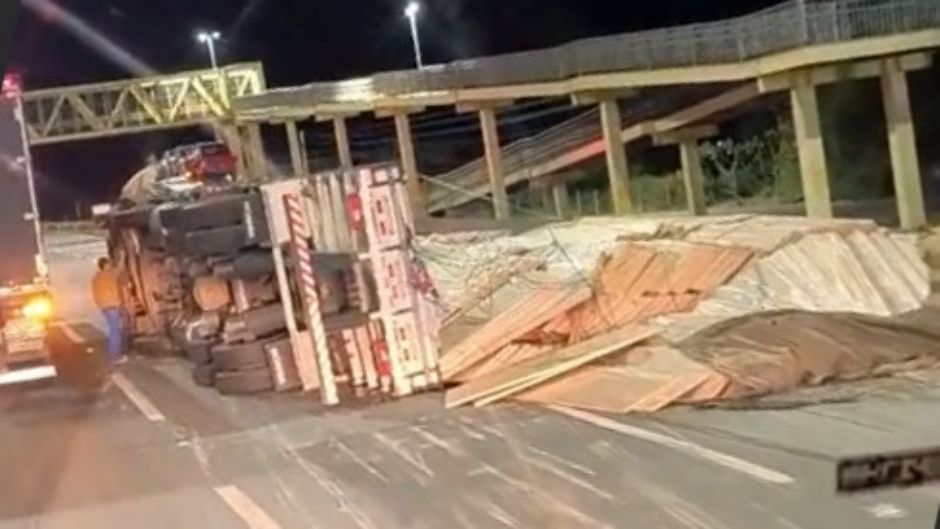 A rodovia teve interdição de duas faixas por cerca de 30 minutos. Motoristas relataram a dificuldade no trecho, com fluxo de veículos parado perto da passarela sobre a rodovia.