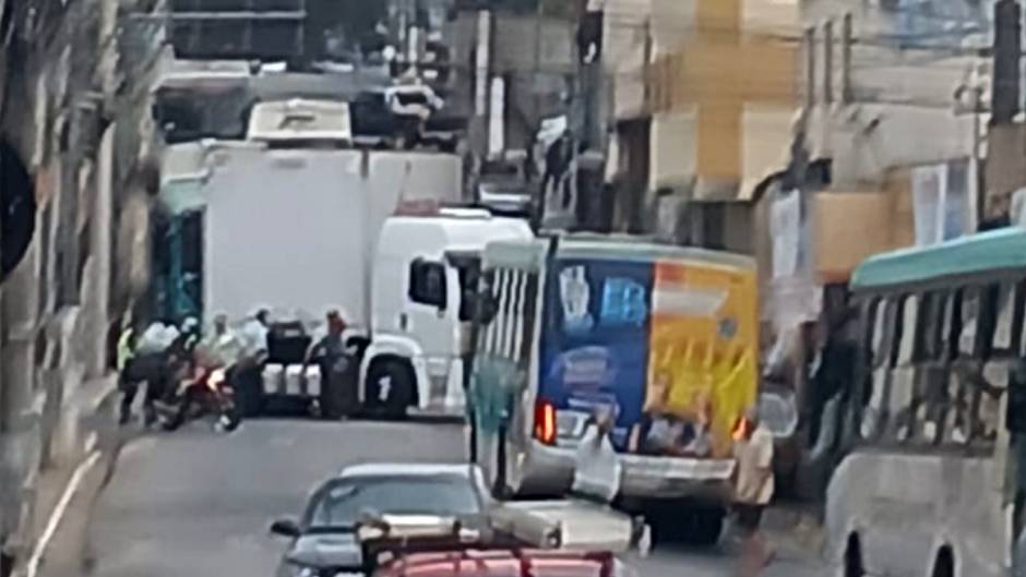 Trânsito ficou parado por mais de 1h30 na R. Alferes Augusto Gomes de Medela, que liga Centro ao São João. Passageiros tiveram que trocar de circular.