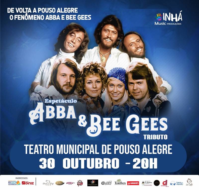 Nesta quinta-feira (30/10) tem espetáculo de música com ABBA e Bee Gees no Teatro Municipal de Pouso Alegre. É o encontro de duas das icônicas bandas disco dos anos 60, 70 e 80. A apresentação está marcada para às 20h. Imperdível!