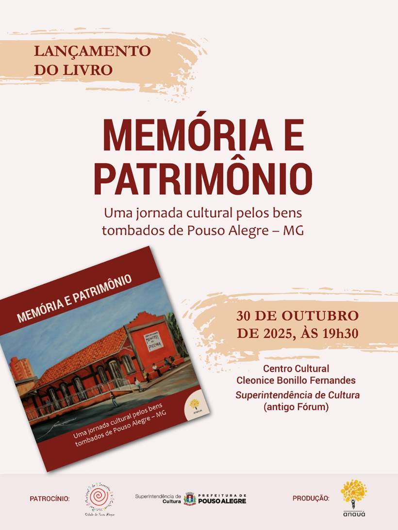 Com lançamento marcado para esta quinta-feira (30/10), o livro ‘Memória e Patrimônio: uma jornada cultural pelos bens tombados de Pouso Alegre/MG’ é mais do que um inventário de edificações históricas. É um retrato vivo da identidade pouso-alegrense construída e transformada ao longo do tempo.