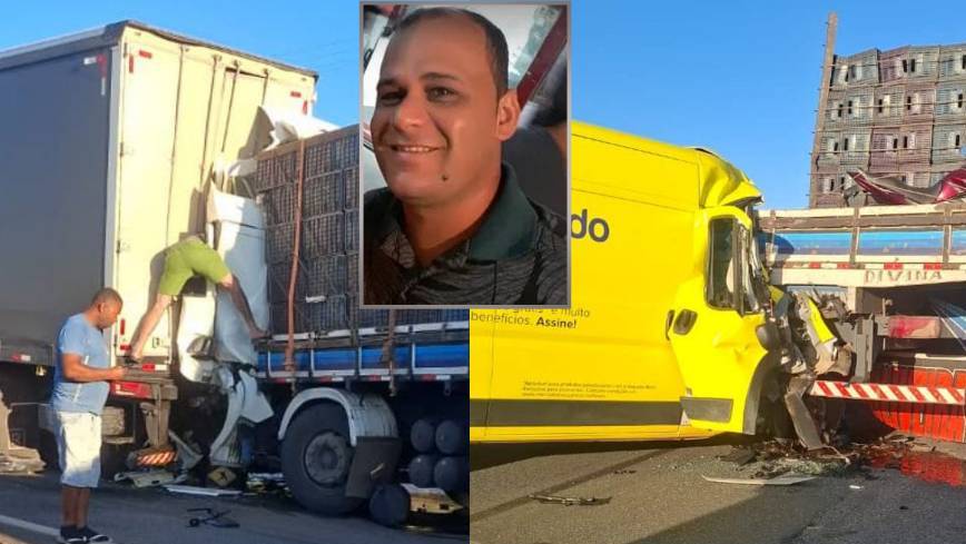Nayara Andery / 07 novembro 2025Danilo Silva Pereira, de 42 anos, dirigia caminhão que teve cabine destruída ao ficar preso entre van e carreta, em São Sebastião da Bela Vista.