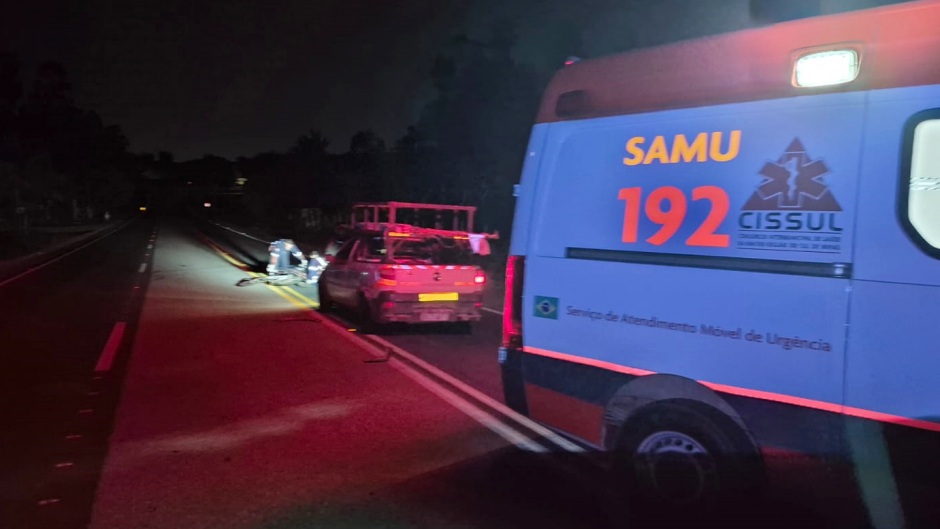 O acidente aconteceu no km 98, no bairro Cantagalo. O motorista da Fiat Strada parou para prestar socorro e acionou o Samu. A vítima estava em parada cardiorrespiratória, com fratura exposta no antebraço esquerdo.