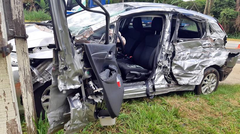 Segundo a Polícia Rodoviária Federal (PRF), que administra o trecho, o motorista do carro Honda Fit teria perdido o controle de direção, invadido a contramão e atingido o caminhão M.Benz Atego. A batida foi no KM 80,2.