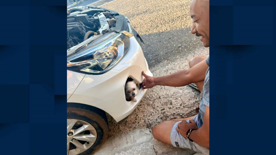 Cãozinho é encontrado dentro de para-choque de carro após dois dias ‘desaparecido’