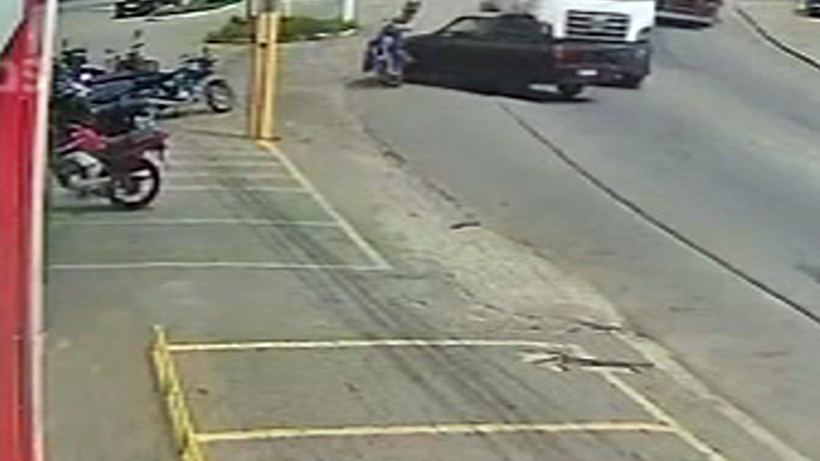 Em seguida a caminhonete atinge a frente de um caminhão que seguia no sentido contrário e acerta em cheio uma moto, que realizava uma ultrapassagem pela direita. Com o impacto, o motociclista foi lançado ao chão e parou em meio a outras motos estacionadas.