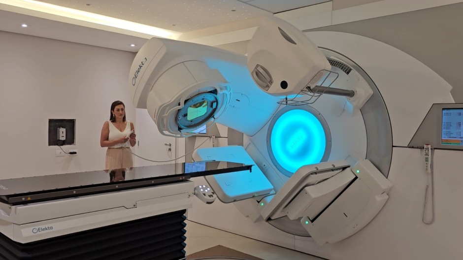 “Ele tem um feixe que permite tratar os pacientes mais rápidos. Pacientes com doses mais altas, conseguimos tratar mais rápido e consegue acelerar a taxa de dose da entrega da radiação do paciente, que fica menos tempo na máquina. Tem um conjunto de ferramentas que possibilita um tratamento mais apurado, mais rápido e preciso.”
