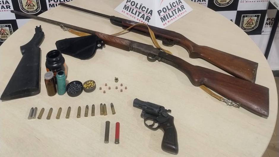 Armas usadas por homem que morreu e homem que matou. Imagem: PMMG