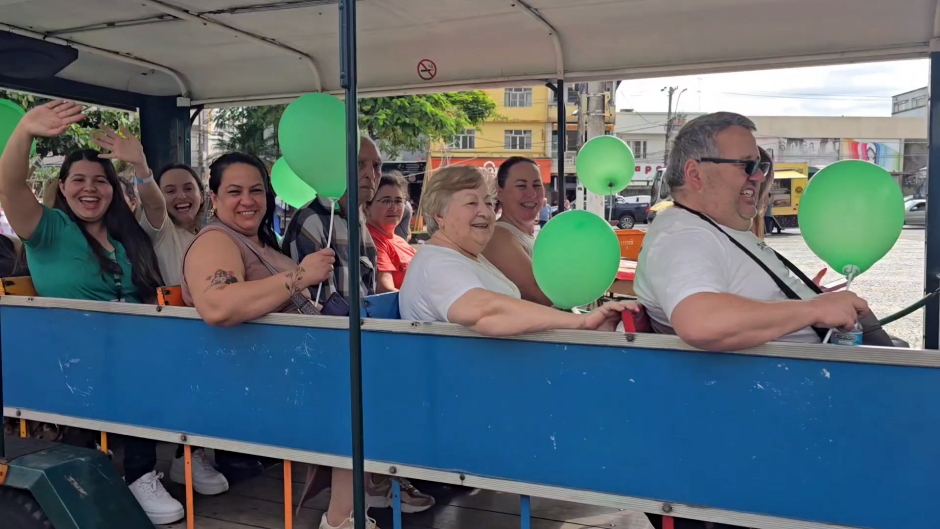 O ponto de encontro para o passeio de trenzinho nesta quarta-feira (17/12) foi a Praça da Catedral, no Centro de Pouso Alegre. Quem não tinha como ir foi buscado em casa, de graça, por um motorista do Instituto Fortalecer.