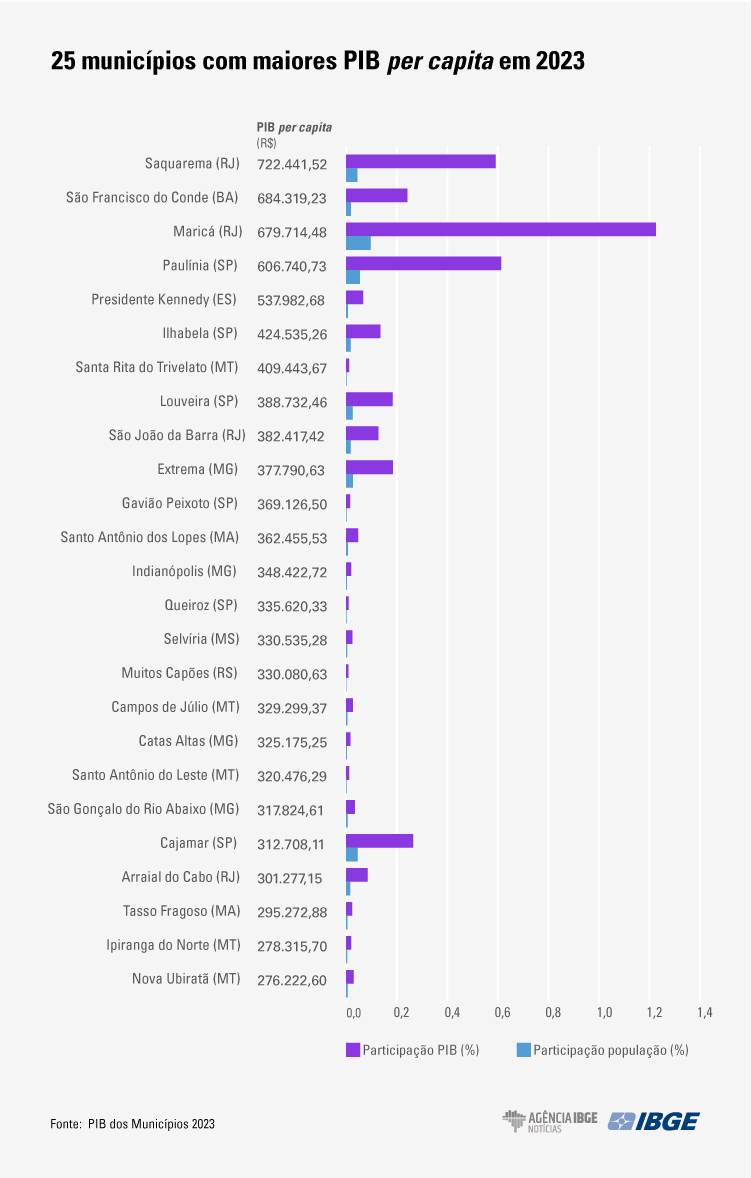 Os dados do PIB dos municípios brasileiros foram divulgados na sexta-feira (19/12) pelo Instituto Brasileiro de Geografia e Estatística (IBGE).