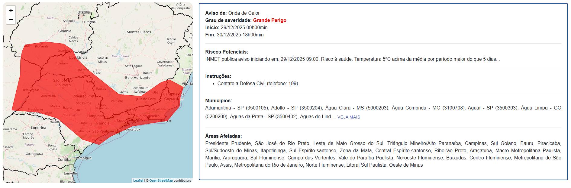 A onda de calor, alertada pelo Instituto Nacional de Meteorologia (INMET), deve seguir até esta terça-feira (30/12). Pouso Alegre e cidades da região estão sob alerta, descrito no mapa do Inmet; veja: