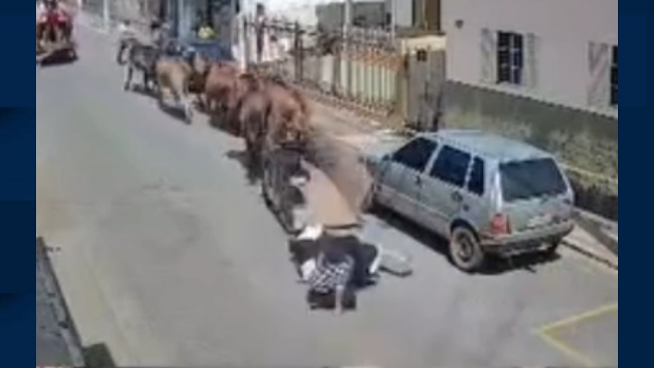 Um outro carro de boi bate em um veículo estacionado na rua. As pessoas saem correndo pela rua. Apesar do susto, não há informação de feridos entre as pessoas que estavam no local e os animais.
