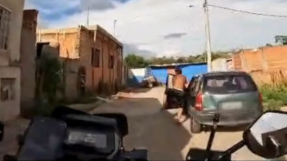 Ao ver a PM, o suspeito desrespeitou a ordem de parada e fugiu em alta velocidade pelo bairro São Geraldo. A polícia disse que ele colocou a vida de pedestres e crianças em risco. Policiais seguem em motos para capturar o suspeito.