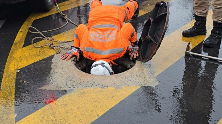 Bombeiros encerram 1º dia de buscas por menino sugado em tubulação de água