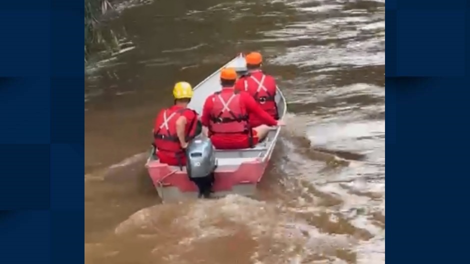 O jovem tem 24 anos e a identidade dele não foi divulgada. Bombeiros descem o rio em embarcações e fazem a busca visual minuciosa pelo leito do rio e galhadas. Chovia durante esta manhã.