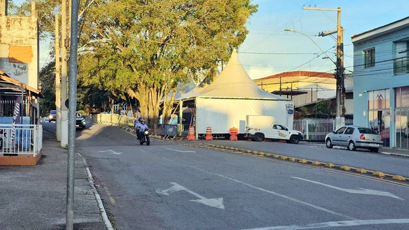 Imagem mostra interdição na Avenida Vicente Simões, onde haverá bloco de Carnaval nesta sexta-feira (13/2) / Foto: Nayara Andery