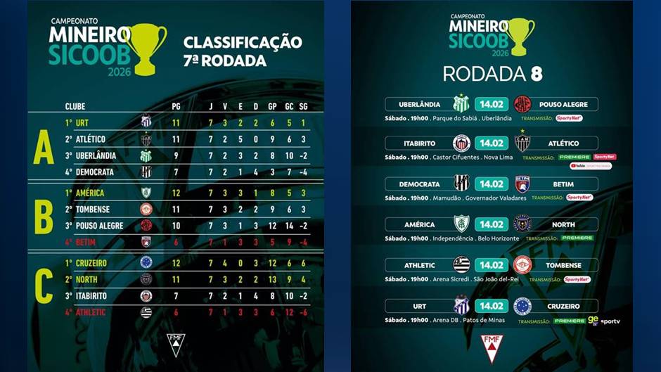 Classificação de momento e confronto da última rodada classificatória do Mineiro 2026. Imagem: reprodução FMF