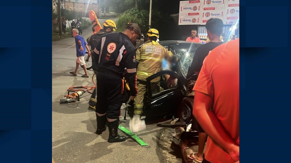 O carro bateu de frente com um poste no canteiro central e ficou com a parte dianteira destruída. A mulher teve fratura exposta na perna e fraturou um dos braços. Ela foi socorrida pelos bombeiros e Samu.