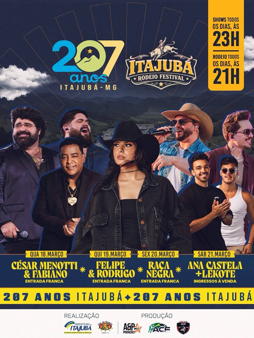 César Menotti & Fabiano e Felipe & Rodrigo se apresentaram nos dois primeiros dias de festa. Show de Ana Castela é pago, enquanto Raça Negra tem entrada gratuita.
