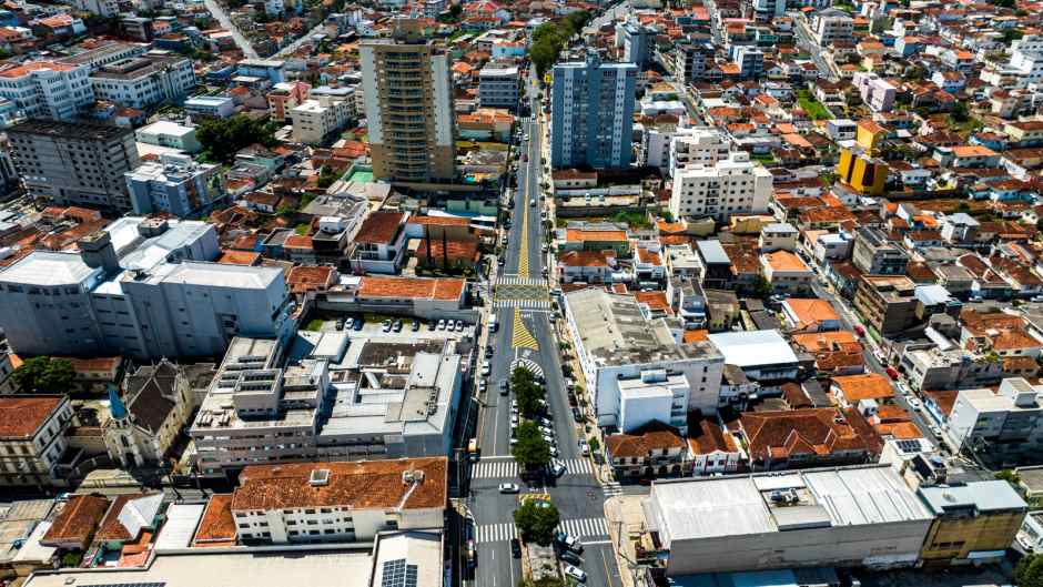 Visão aérea do Centro de Pouso Alegre. Imagem prefeitura.