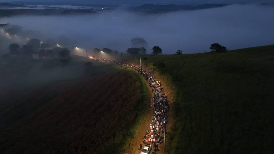 A saída acontece às 5h, em uma manhã de fé e oração, uma caminhada de 10km até o monumento. A via sacra foi conduzidas pelo pároco padre Tiago, e pelo vigário da paróquia, Padre Júnior.