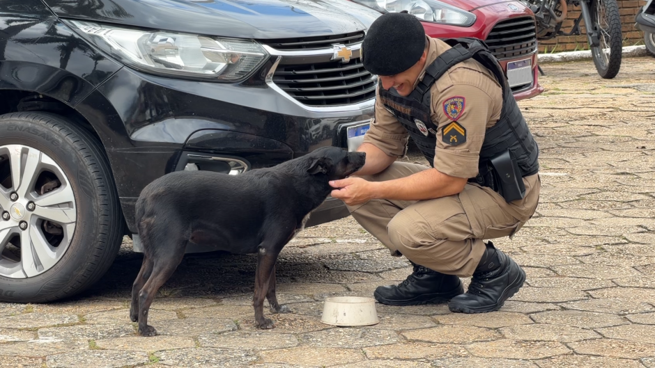 Nayara Andery / 13 abril 2026Essa é a Neguinha, uma cadela que adora pedir carinho. Ela é o pet que mora e ganha cuidado no 20º Batalhão de Polícia Militar de Pouso Alegre. Chegou na instituição já faz oito anos e conquistou os militares.