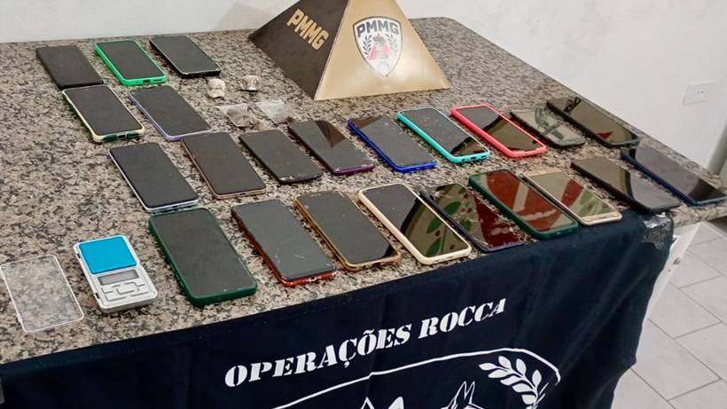 Mais de 20 celulares foram apreendidos pela PM na operação / Foto: PMMG